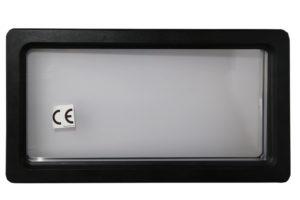 Характеристики: внутрішні розміри рами: 610×305мм, Зовнішні розміри рами: 640×336мм монтаж за допомогою саморізів, подвійне стікло 2,4мм + 2,4мм, на панель 38-40мм.